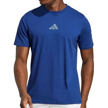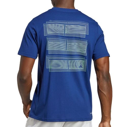 Stand out anywhere you are in the hype graphic designs of the adidas Graphic line. The AO Graphic tee shirt has a comfy crew fit with pixelated tennis court graphics on the back. Made from recycled materials and ethically sourced cotton.
