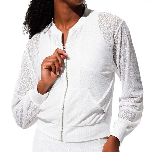Get ready for the London major this summer in the all whites of the Eleven Wimbledon Summer 2023 Collection by Venus Williams. The Wimbledon Play Hard Jacket features a 4-way stretch material, leopard printed mesh, full metal zipper, and a ribbed waistband, sleeve cuffs, and collar. Made with breathable, quick-dry fabric.