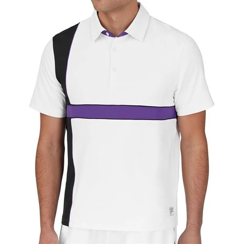 Embody the sport of kings in the sleek lines and elegant purple of the Fila Back Spin Collection. The Back Spin Short Sleeve polo has a ribbed collar, a three-button placket, and a geometric color blocked design. Made with moisture-wicking, anti-odor 50 UV fabric.