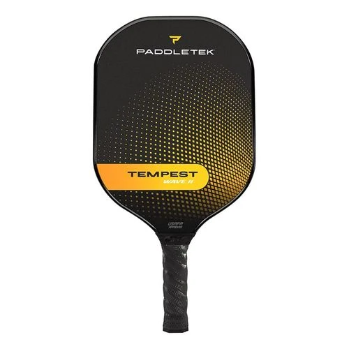 A true playerโs paddle, the Tempest Wave II from Paddletek offers you incredible control for strategic short games. The textured graphite surface makes it easy to place the ball exactly where you want it, and the graphite in the Tempest PolyCore dampens vibrations and reduces weight while still providing enough power for a put-away shot.